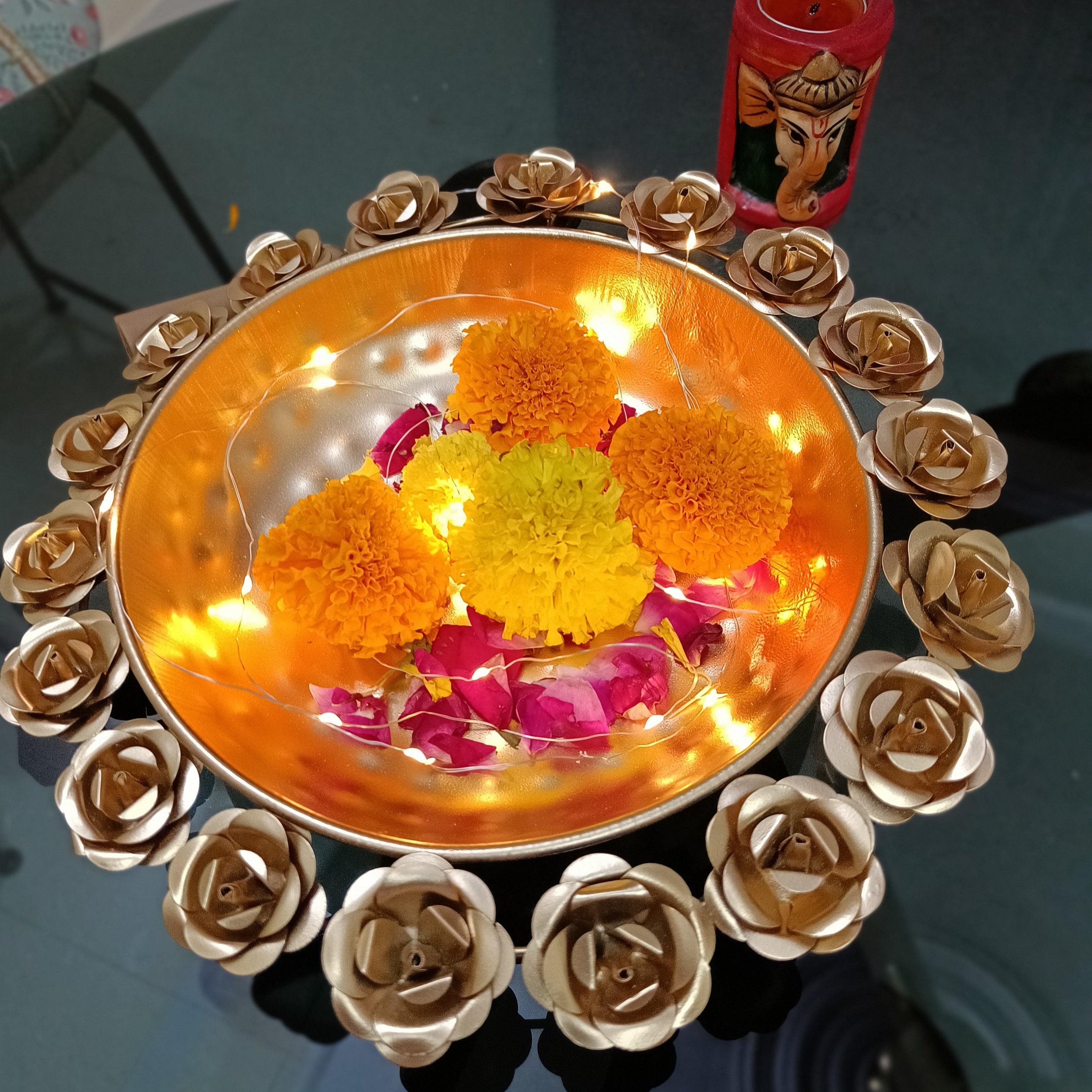Motif:  Symbol of Purity and Enlightenment: The shubh labh has deep-rooted symbolism in Indian culture, representing purity, spiritual growth, and enlightenment. Our tealight holders showcase the intricate beauty of the lotus motif, adding an element of grace to any space.