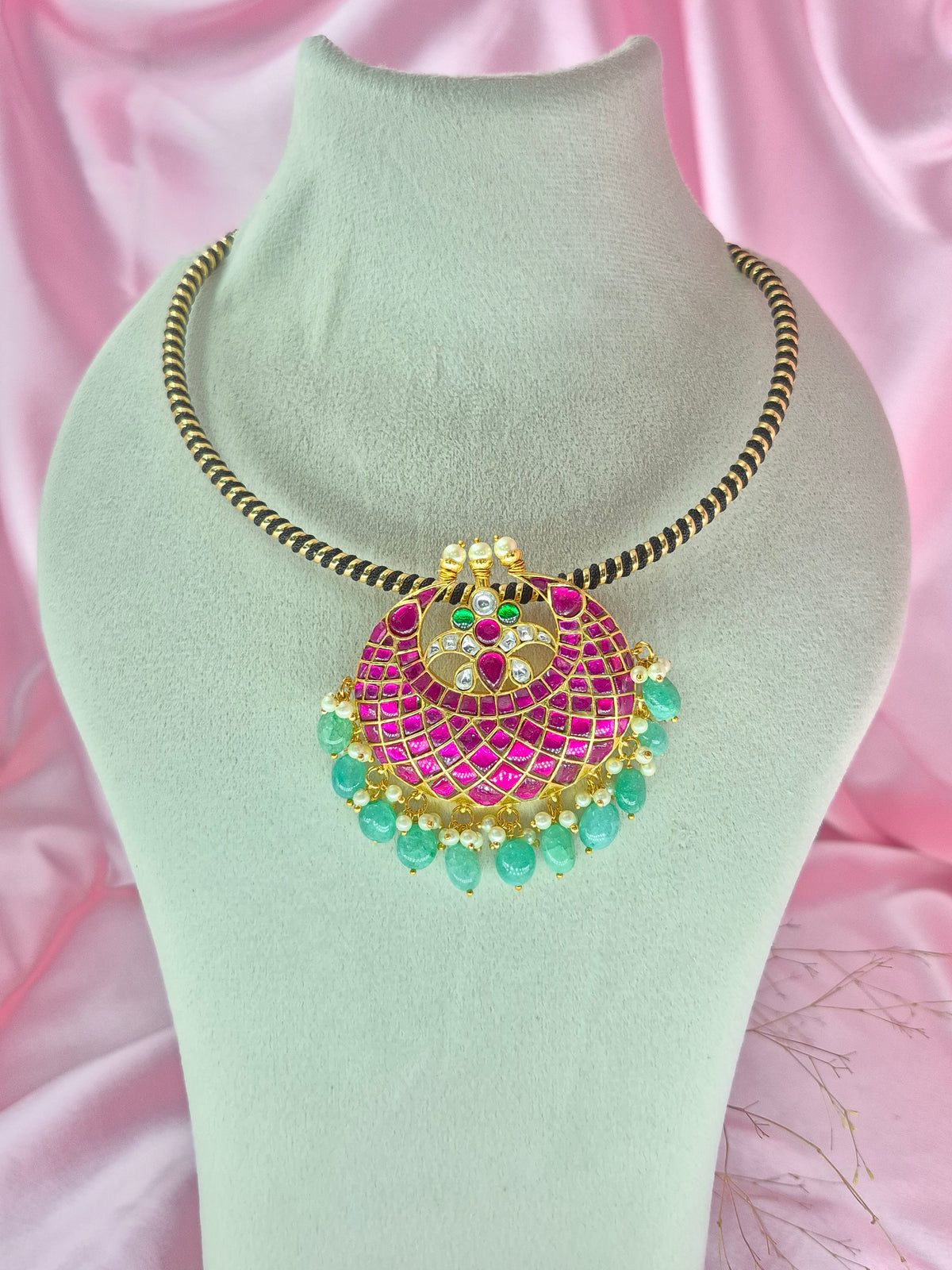 Enhance your jewelry collection with the ManjushaJadau Kundan Chokar/ Hasli,and experience the perfect marriage of beauty and craftsmanship. Order yours today and transform any outfit into a stunning ensemble!